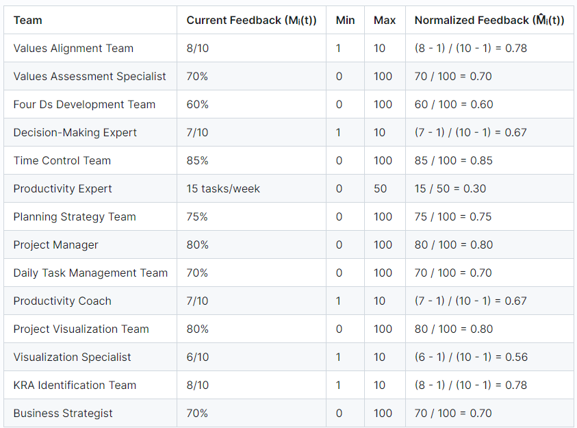 M̂ᵢ(t) Normalized Feedback Metric of Team i at time t.