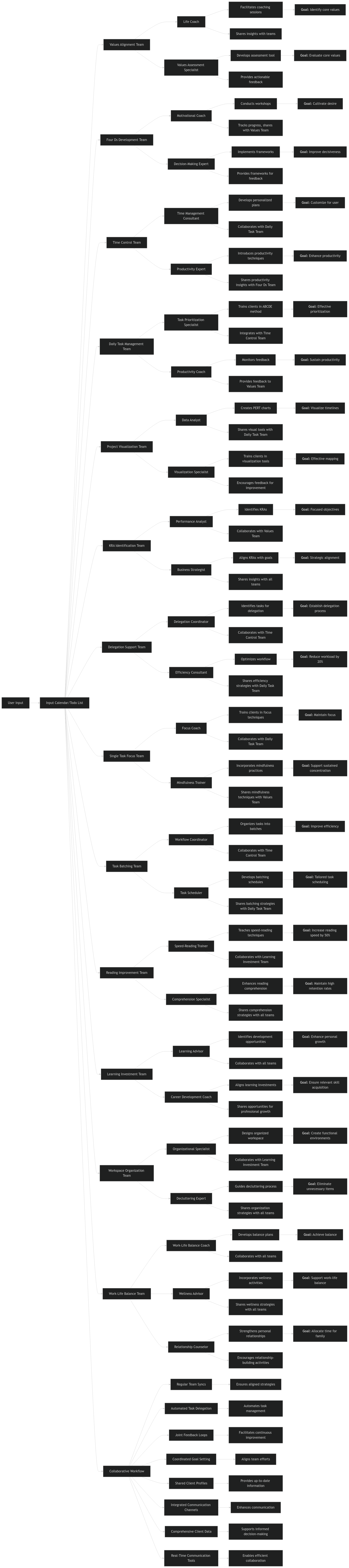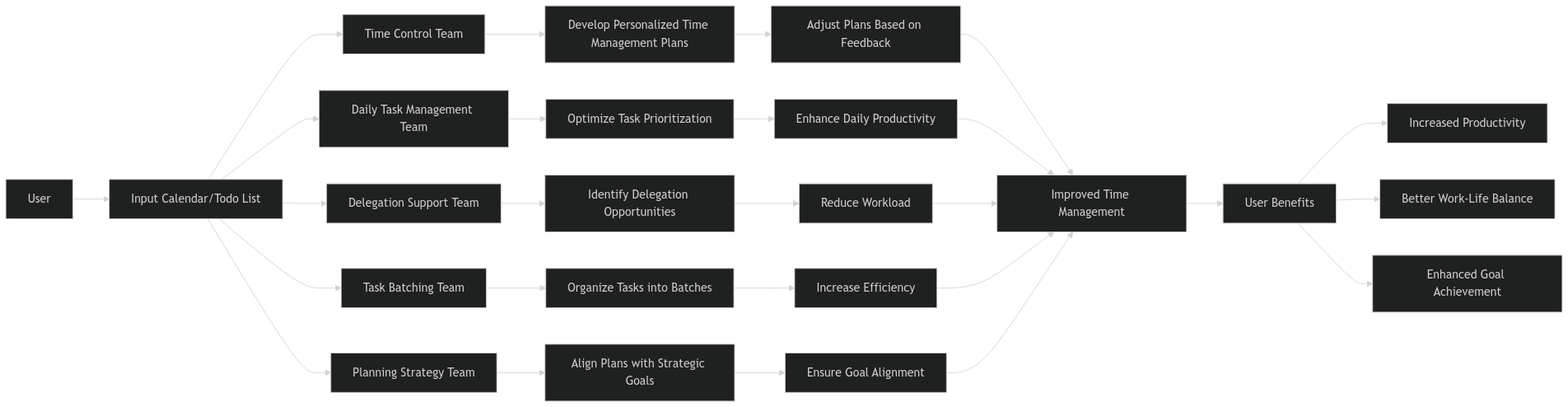 Each with specific roles, personalities, feedback loops, deliverables, and metrics to enhance areas of your time management.